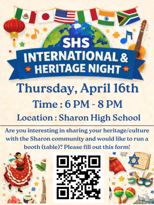 Sharon Public Schools is excited to host its second annual District-wide International Night. The success of this event depends on our community coming together to celebrate and share the cultural […] |